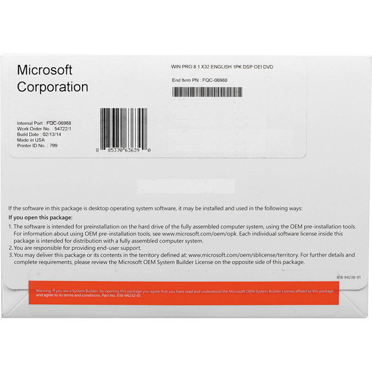 100% online Activeringsvensters 8,1 Professionele OEM Pakketwinst 8,1 Pro Engelstalige Versie