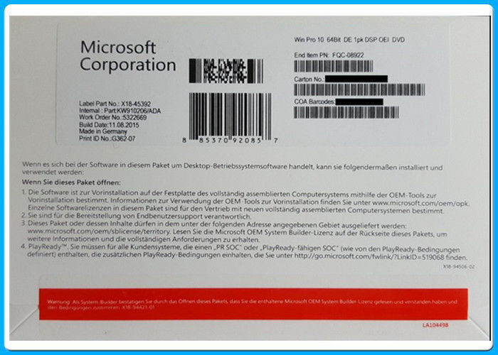 | windows 10 pro OEM 32 bit / 64 bit Engels/ Frans/ Italiaans/ Pools/ Koreaans/ Japans/ Spaans/ Duits/ Russisch |